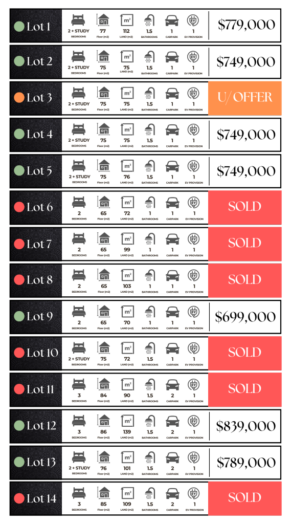 Each open-plan kitchen is designed for style and functionality, featuring a choice of three kitchen selections, an engineered stone benchtop with overhang breakfast bar, under-kitchen storage, top-of-the-line Bosch appliances, and soft-close cabinetry for a seamless cooking experience.